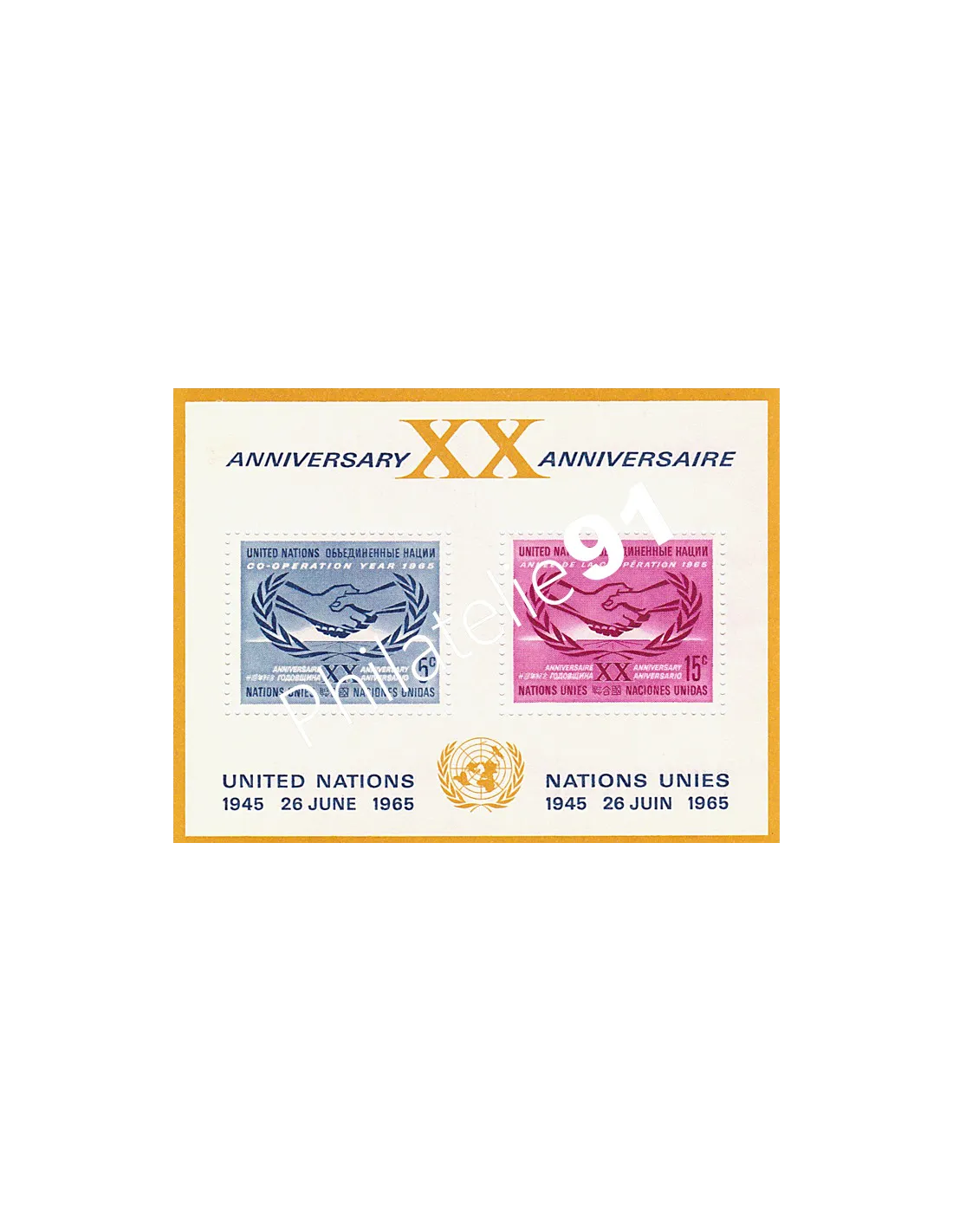Mention "XX anniversaire - Nations Unies - 26 Juin - 1945-1965".