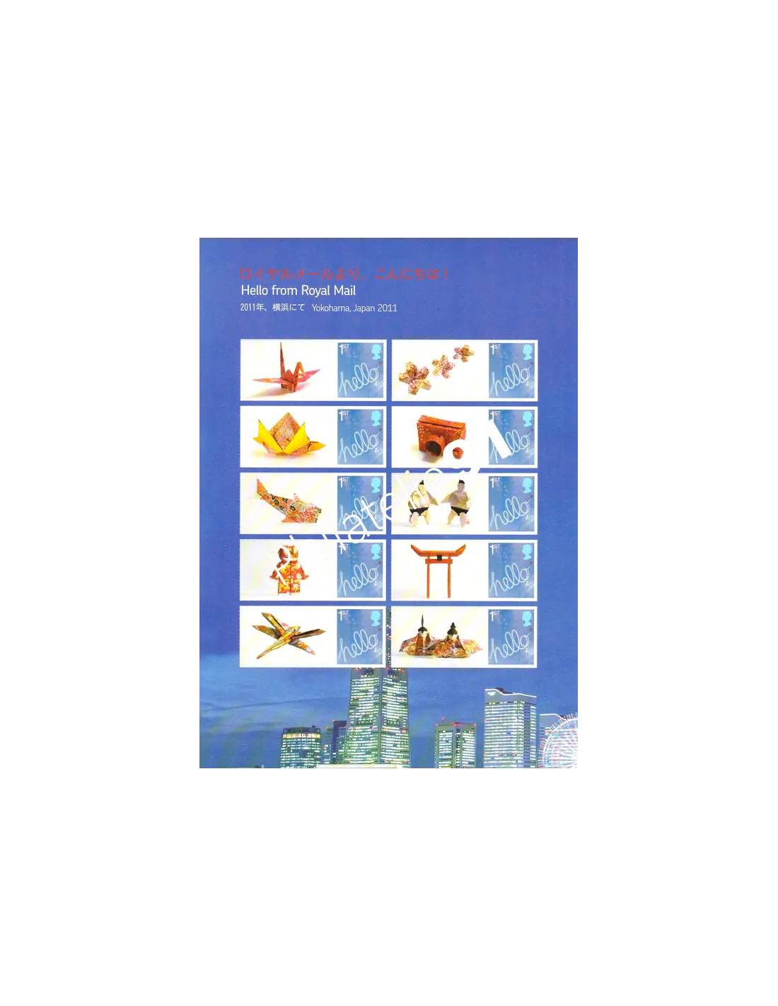 GRANDE-BRETAGNE - n° 2685f ** (Demi-feuille Adhésive) - "Philanippon 11" - Message "Hello" - Vignettes perso (Origami)