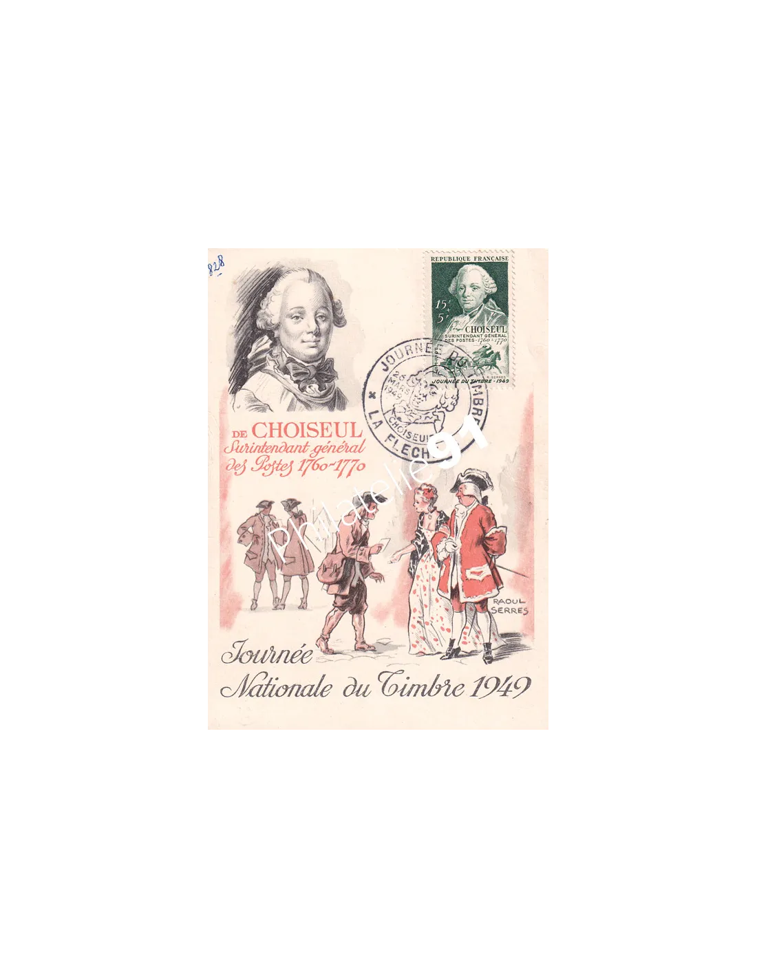 Oblitération Premier Jour "Journée du Timbre - Choiseul - La Flèche", du 26 mars 1949.