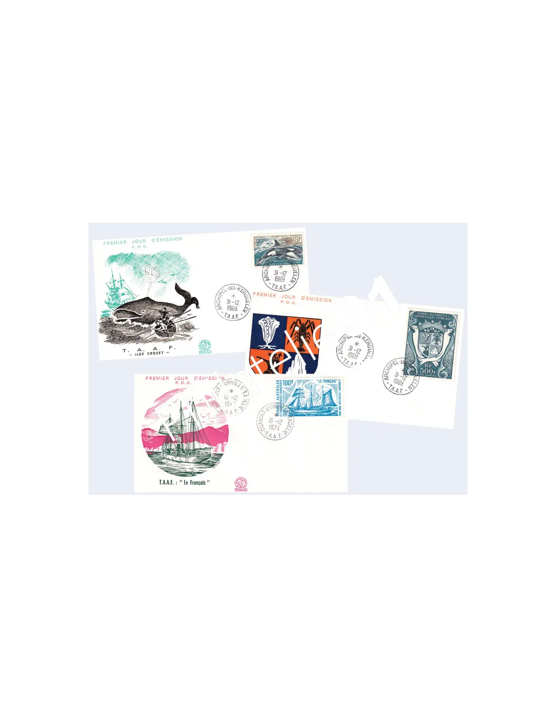 Lot de 3 enveloppes 1er jour des Terres Australes et Antarctiques Françaises (T.A.A.F.).