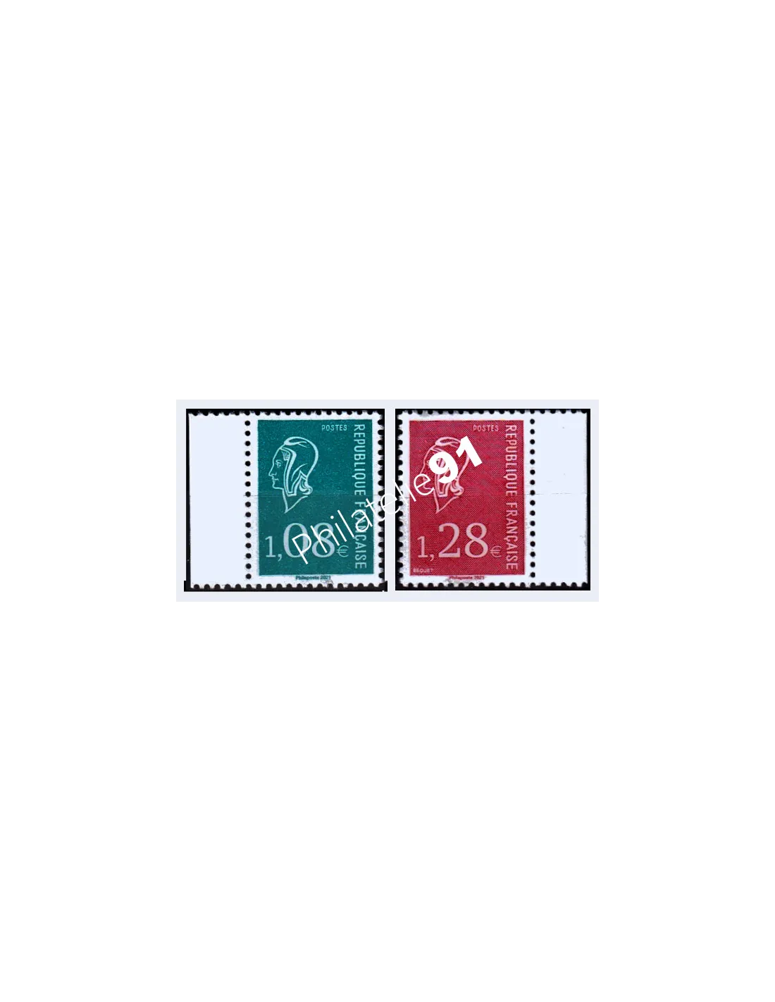 - 5535-5536 Les 2 timbres petit format découpés du Carnet 50 ans de la Marianne de Béquet