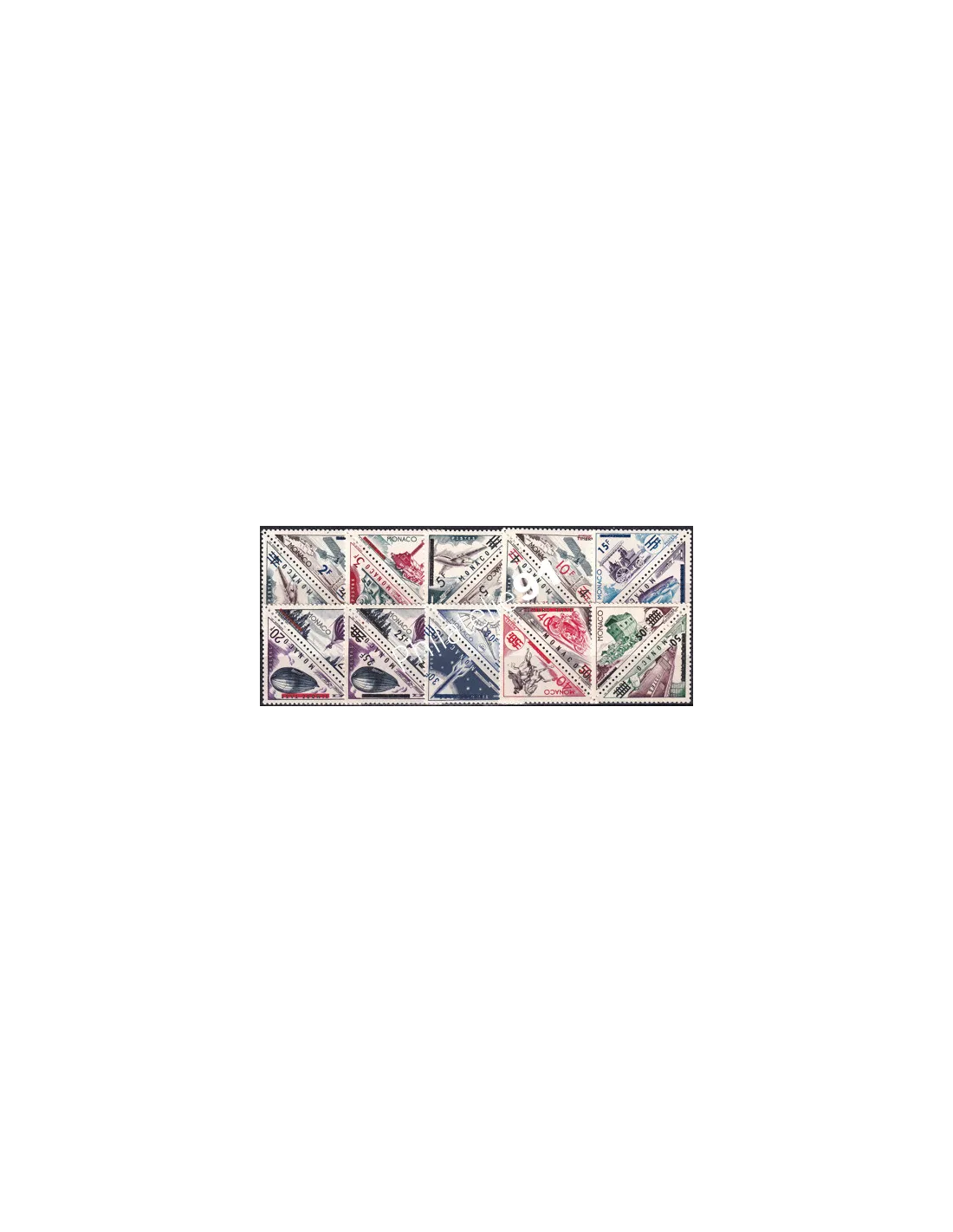 MONACO - n° 453 à 472 ** (10 paires) - Timbres-taxes de 1953 surchargés - Moyens de transport