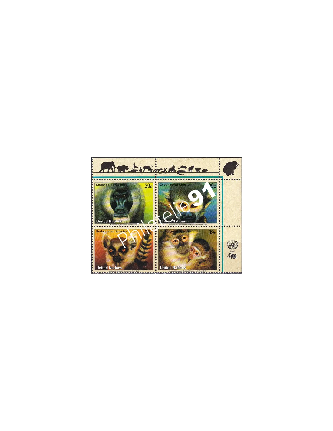 ONU - New-York - n° 1024 à 1027 ** (Bloc de 4) - Espèces menacées d'extinction (XV) - Singes et lémuriens