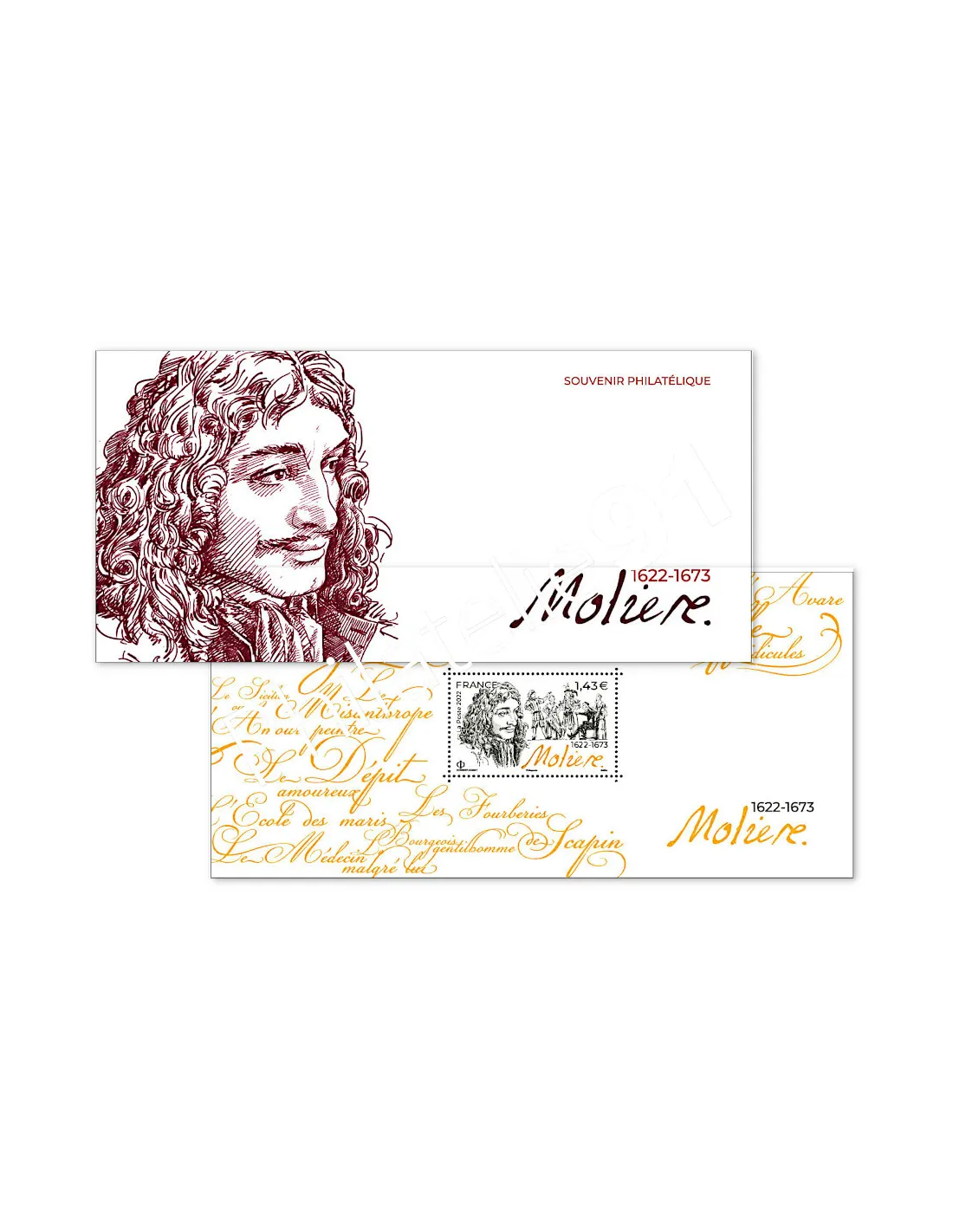 Un souvenir philatélique accompagne l’émission commémorative consacrée à Molière.