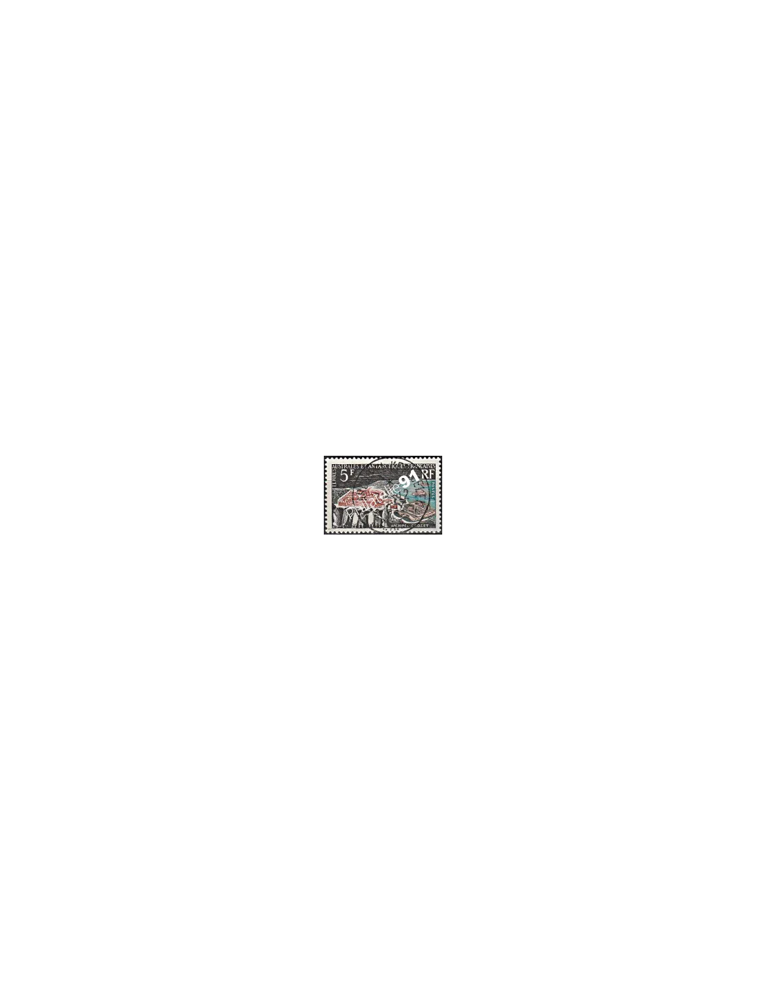 5 f. bleu, brun-lilas, noir et brun-rouge. Timbre oblitéré des Terres Australes et Antarctiques Française (T.A.A.F.).