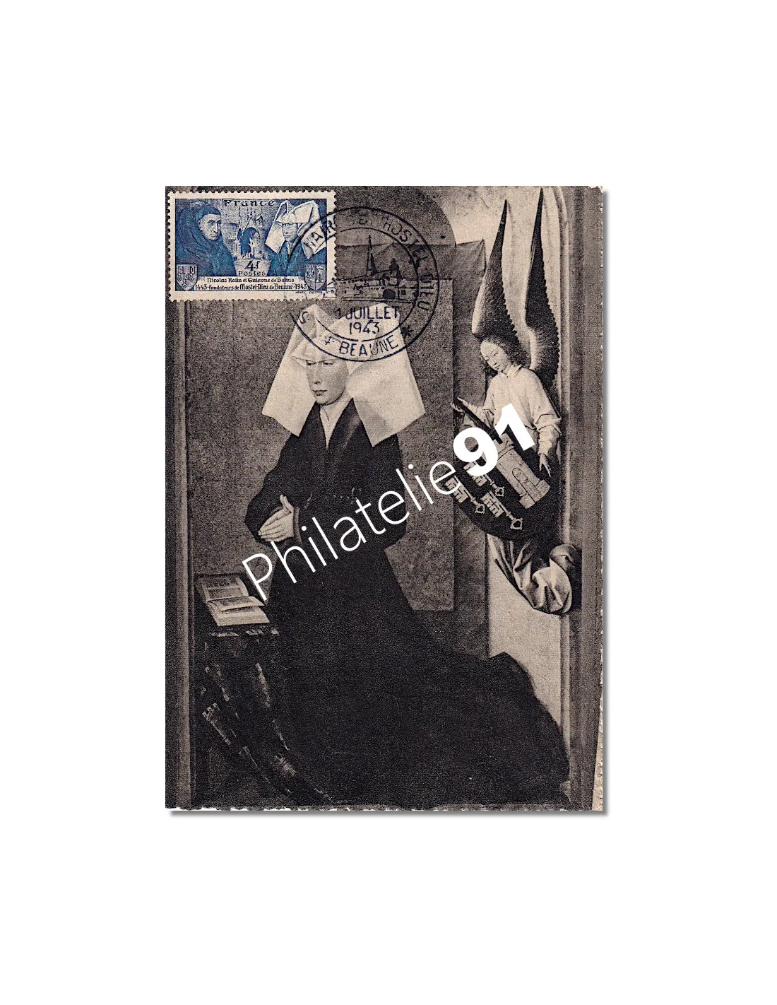 Timbre n° 583 et oblitération sur carte du 5ème centenaire de l'Hôtel-Dieu de Beaune.