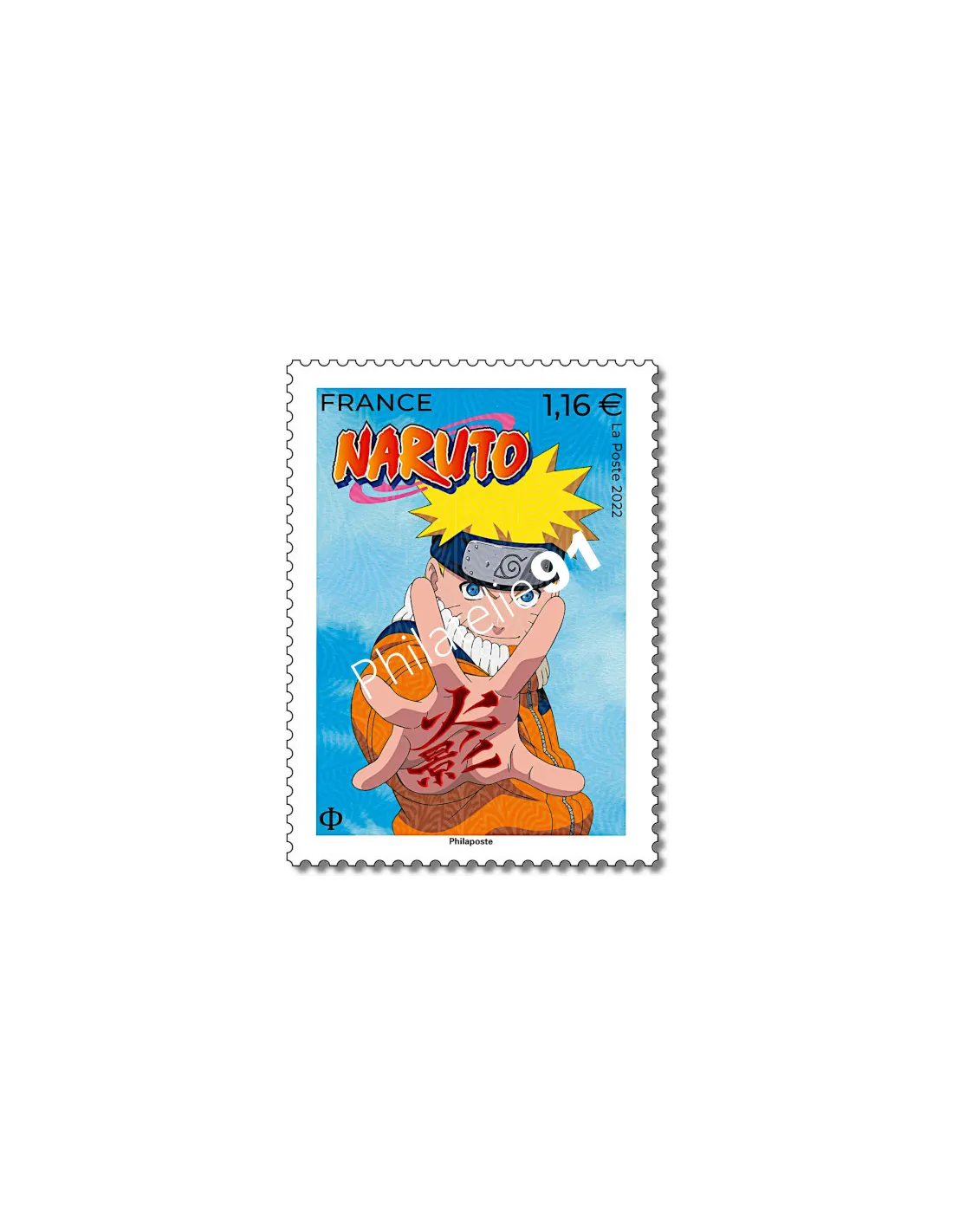 | Création Masashi Kishimoto Mise en page : Valérie Besser Impression : offset Format du timbre : 30 x 40,85 mm Présentation : 15 timbres à la feuille avec marges illustrées Tirage : 705 000 exemplaires Valeur faciale : 1,16 € |