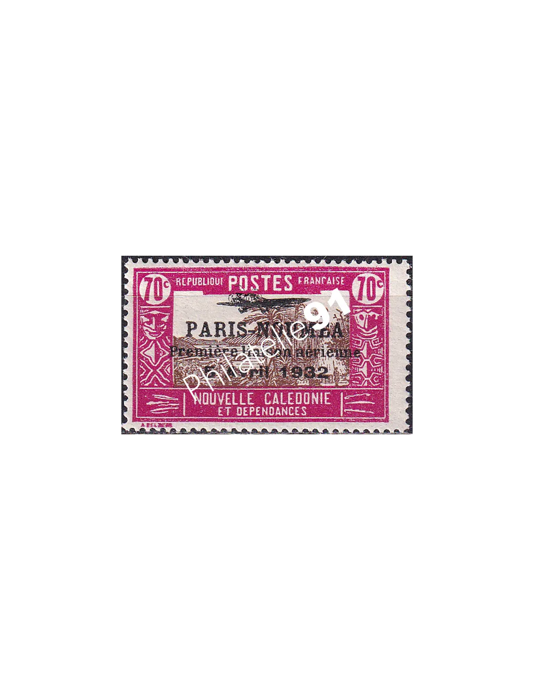 Timbre-poste n° 151A avec surcharge "Paris-Nouméa - Première liaison aérienne - 5 avril 1932".