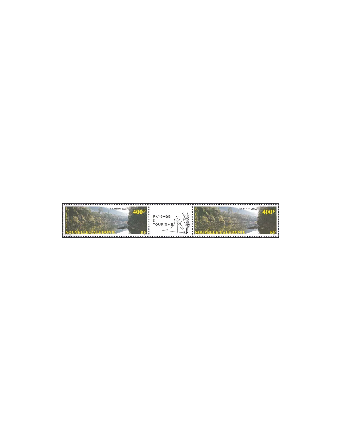 NOUVELLE CALEDONIE - PA n° 280A ** (Paire avec vignette centrale) - Paysage - La rivière bleue