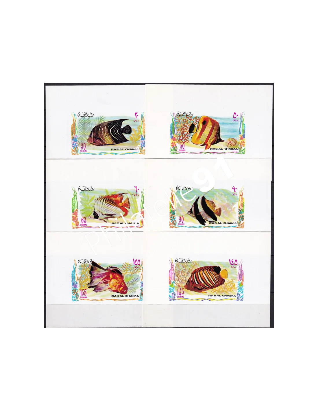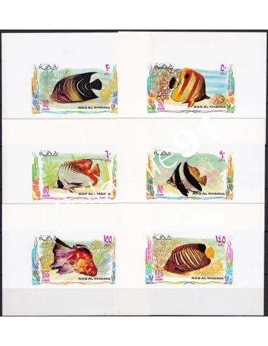 RAS AL KHAIMA - n° 628 à 633 ND ** (Réf. Catalogue Michel) sur 6 feuillets à fond blanc - Poissons (230706-2)
