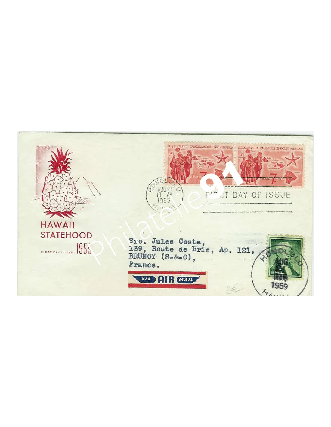 Oblitération : Honolulu du 21 août 1959 à destination de la France