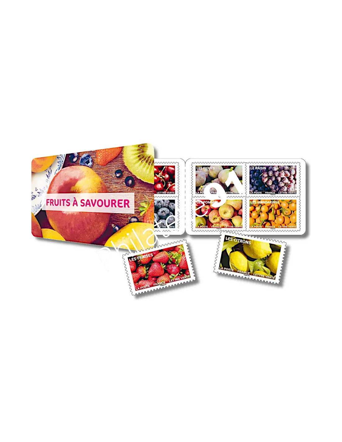 Il s'agit d'un carnet représentant 12 fruits que l'on trouve en France. Chaque fruit correspond à un mois de l'année. Les citrons en janvier, les kiwis en février, les bananes (DOM-TOM) en mars, les fraises en avril, etc...