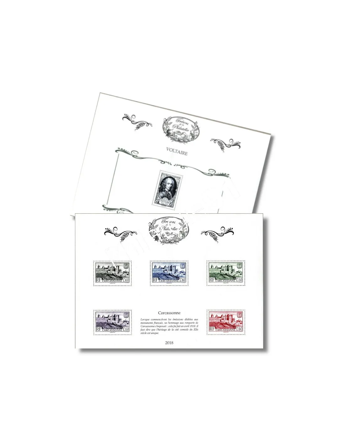 Cette pochette des "Trésors de la philatélie 2018" contient le feuillet "Voltaire".