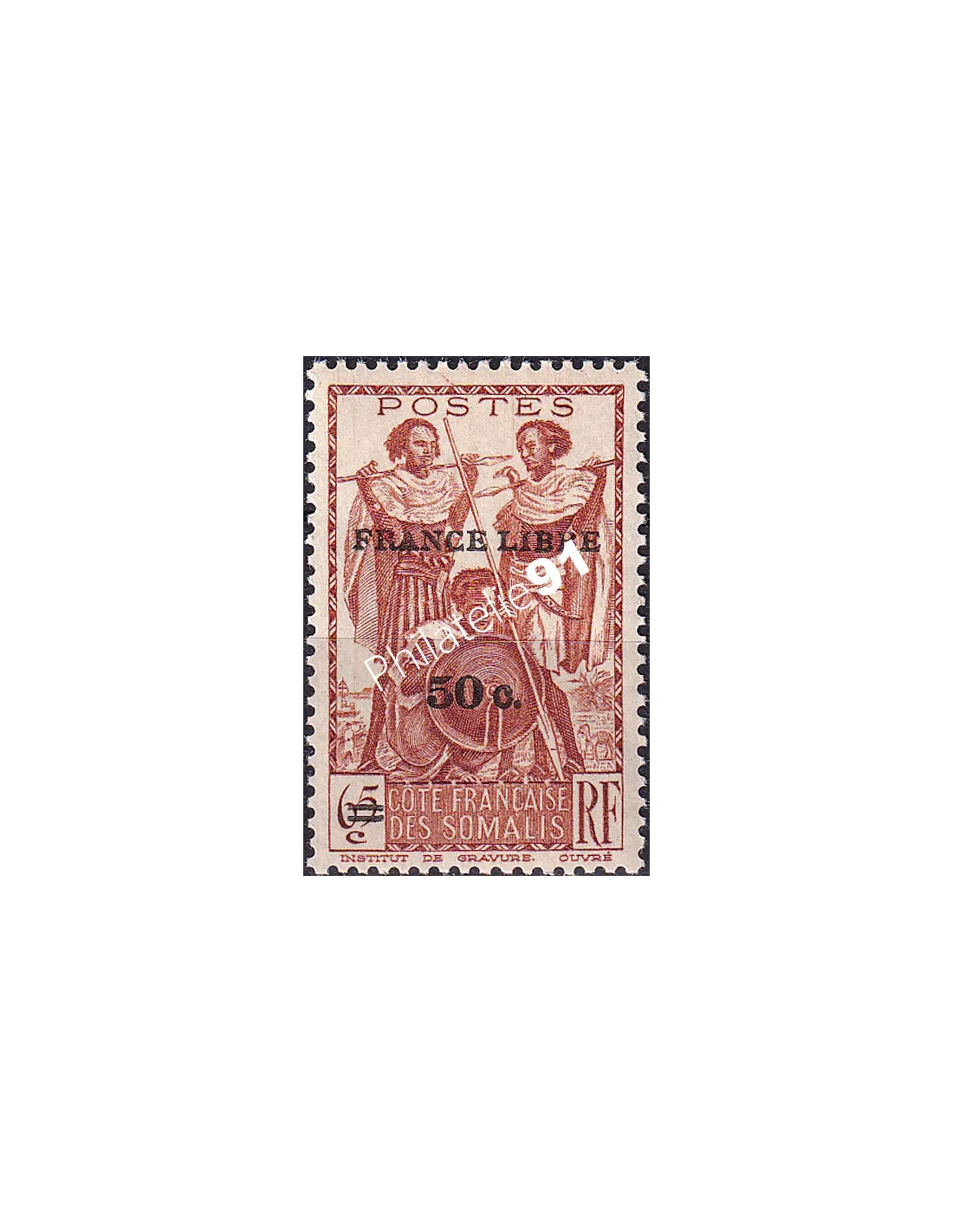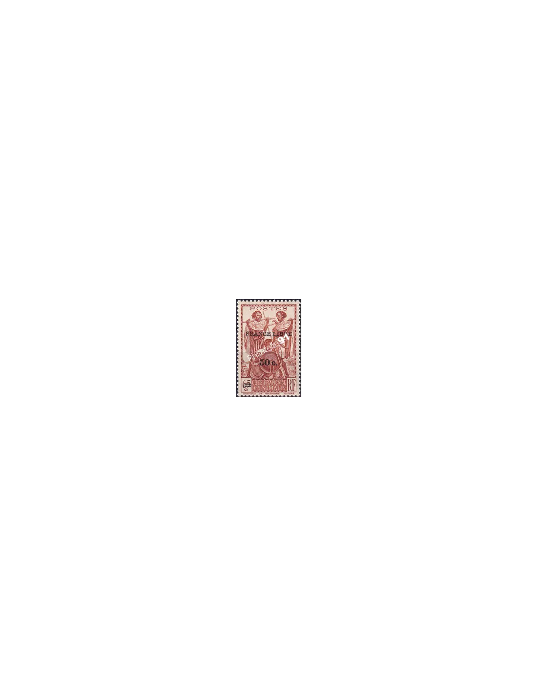 COTE DES SOMALIS - n° 233 * - Guerriers - Timbre surchargé "France Libre" + nouvelle valeur