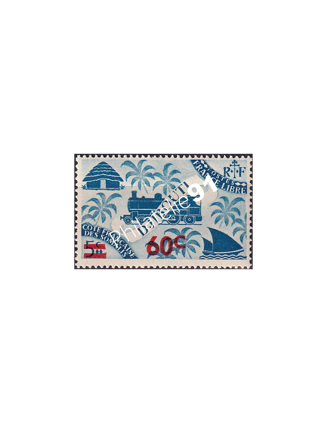COTE DES SOMALIS - n° 255 * - Série de Londres - Locomotive - Timbre surchargé