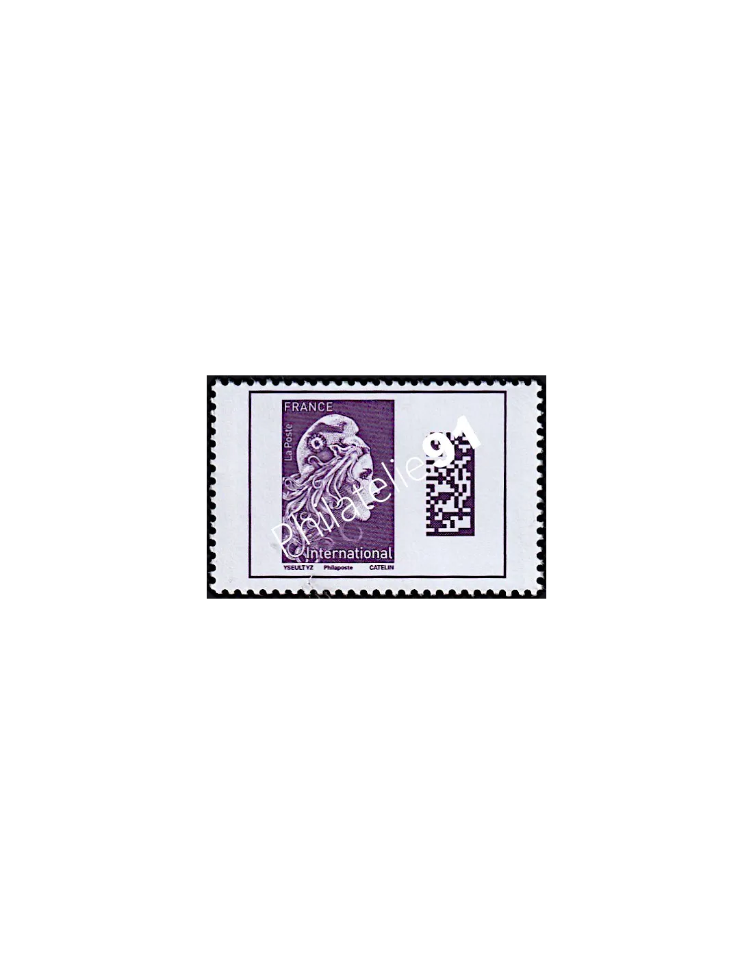 Mention Philaposte. Timbre Marianne l'Engagée, violet, internationale.