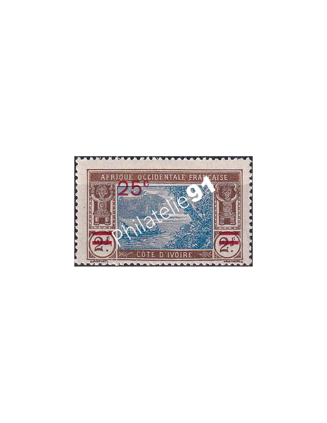 COTE D'IVOIRE - n° 73 * - Lagune Ébrié - Timbre surchargé avec nouvelle valeur