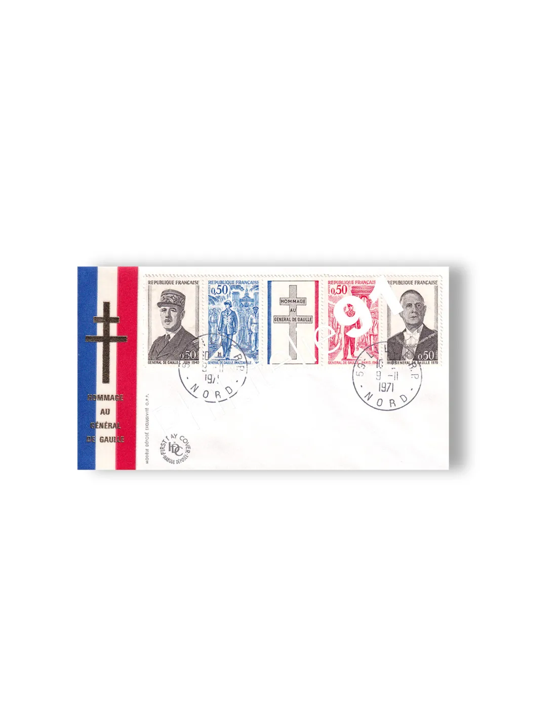 FRANCE - n° 1698A (Bande) oblitérée sur enveloppe 1er Jour - Hommage au général De Gaulle (231221-15)