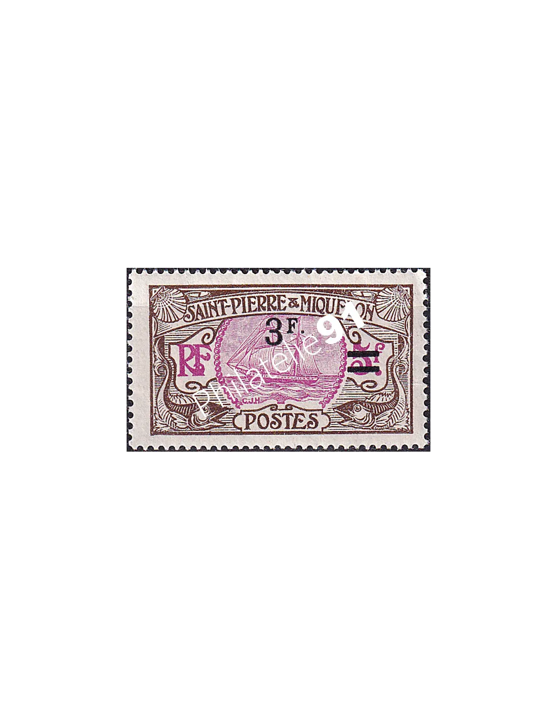 ST-PIERRE et MIQUELON - n° 126 * - Bateau de pêche - Timbre avec nouvelle valeur en surcharge