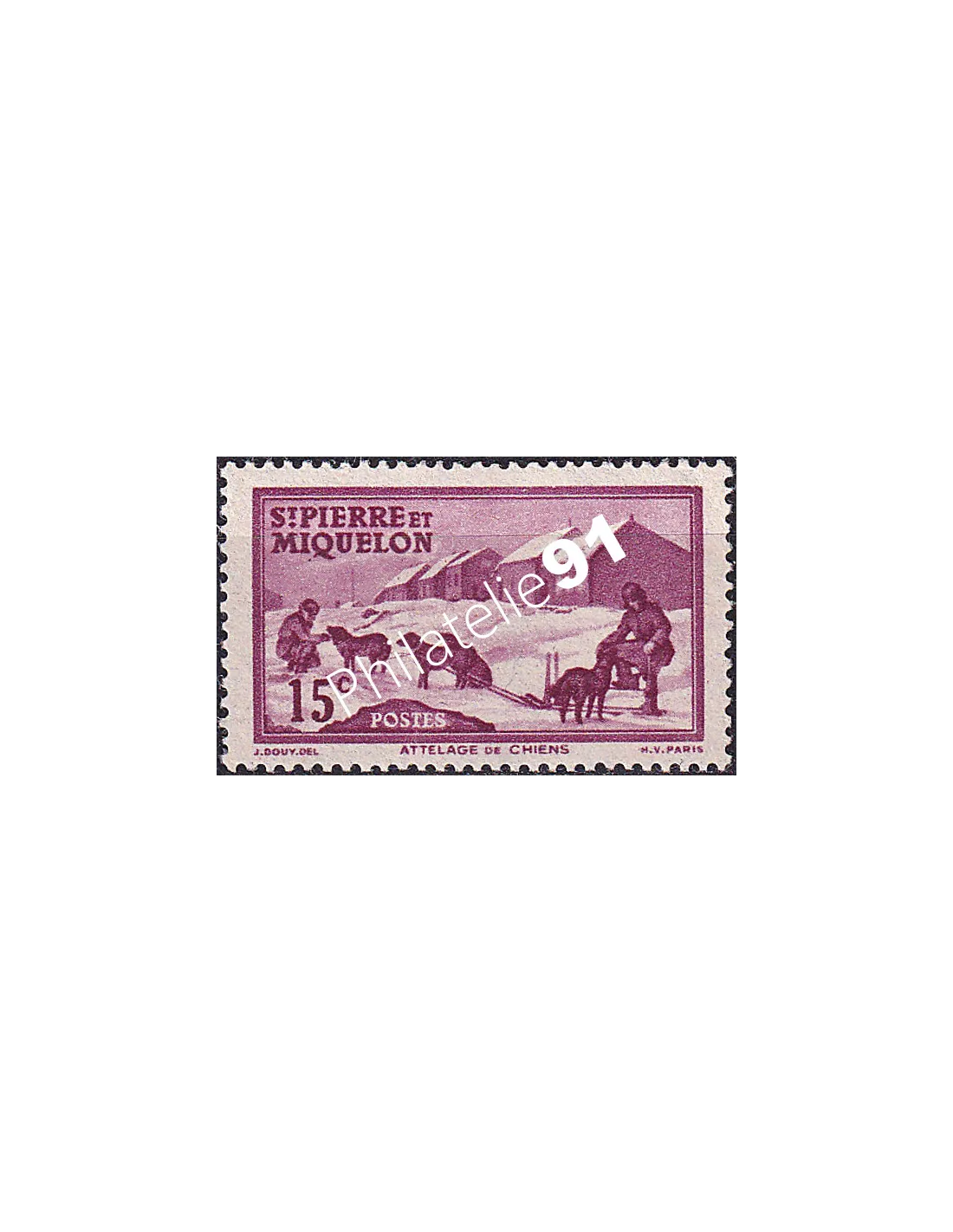 ST-PIERRE et MIQUELON - n° 292 * - Attelage de chiens de traineau - Timbre sans mention "RF"