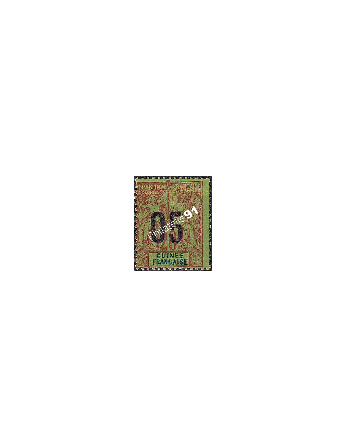 Timbre de France avec mention "GUINÉE FRANÇAISE" dans le cartouche.
