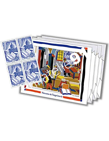 Il est l’écrin précieux qui présente le timbre "ÉDITION ET RELIURE" et évoque l’atmosphère de l’atelier de Gutenberg en 1450, date de l’invention de l’imprimerie qui va permettre la transmission du savoir. Il témoigne du savoir-faire de l’imprimerie des timbres et produits sécurisés du Groupe La Poste, située en Dordogne.