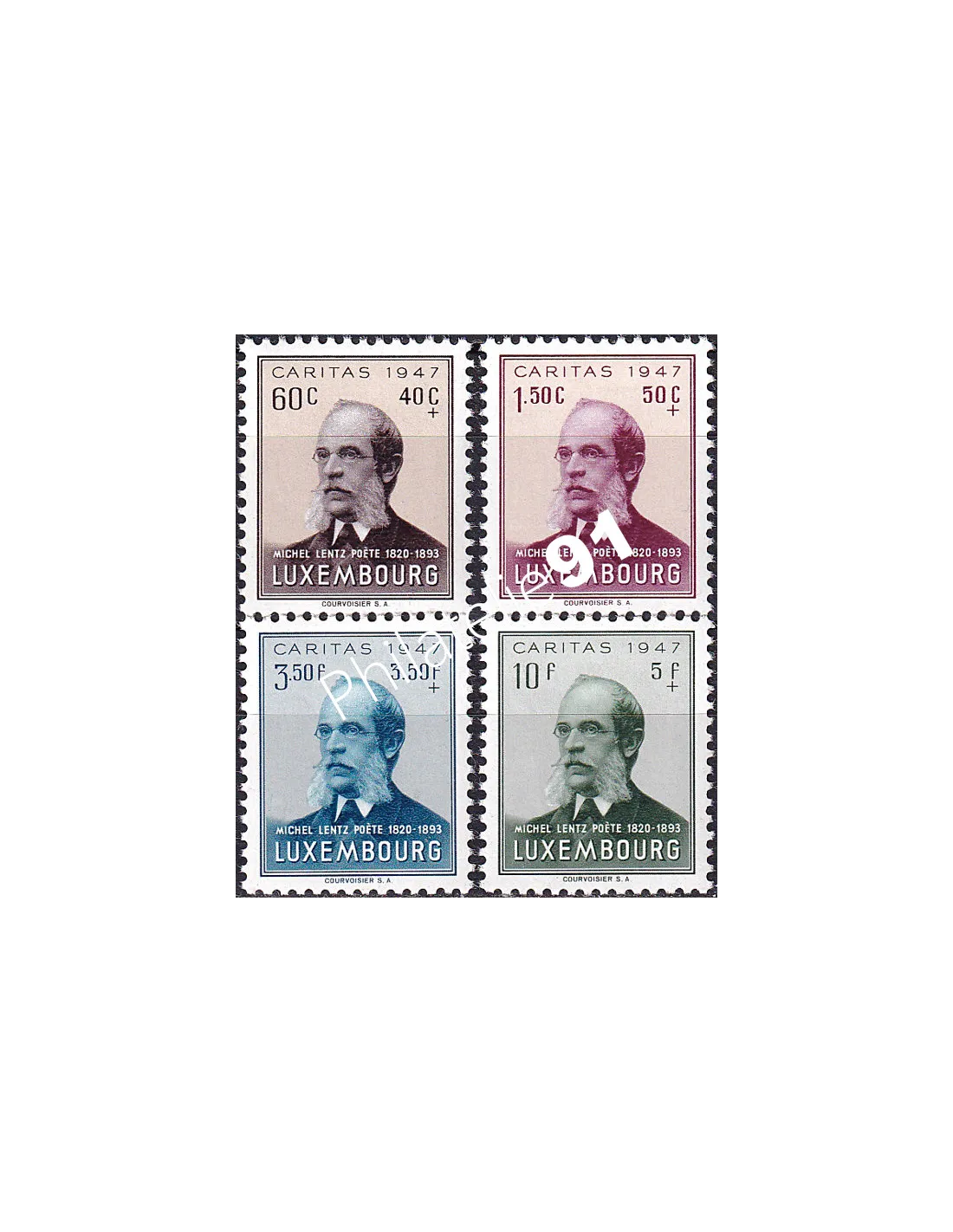 LUXEMBOURG - n° 402 à 405 ** - Au profit d'oeuvres sociales - Effigie du poète Michel Lentz