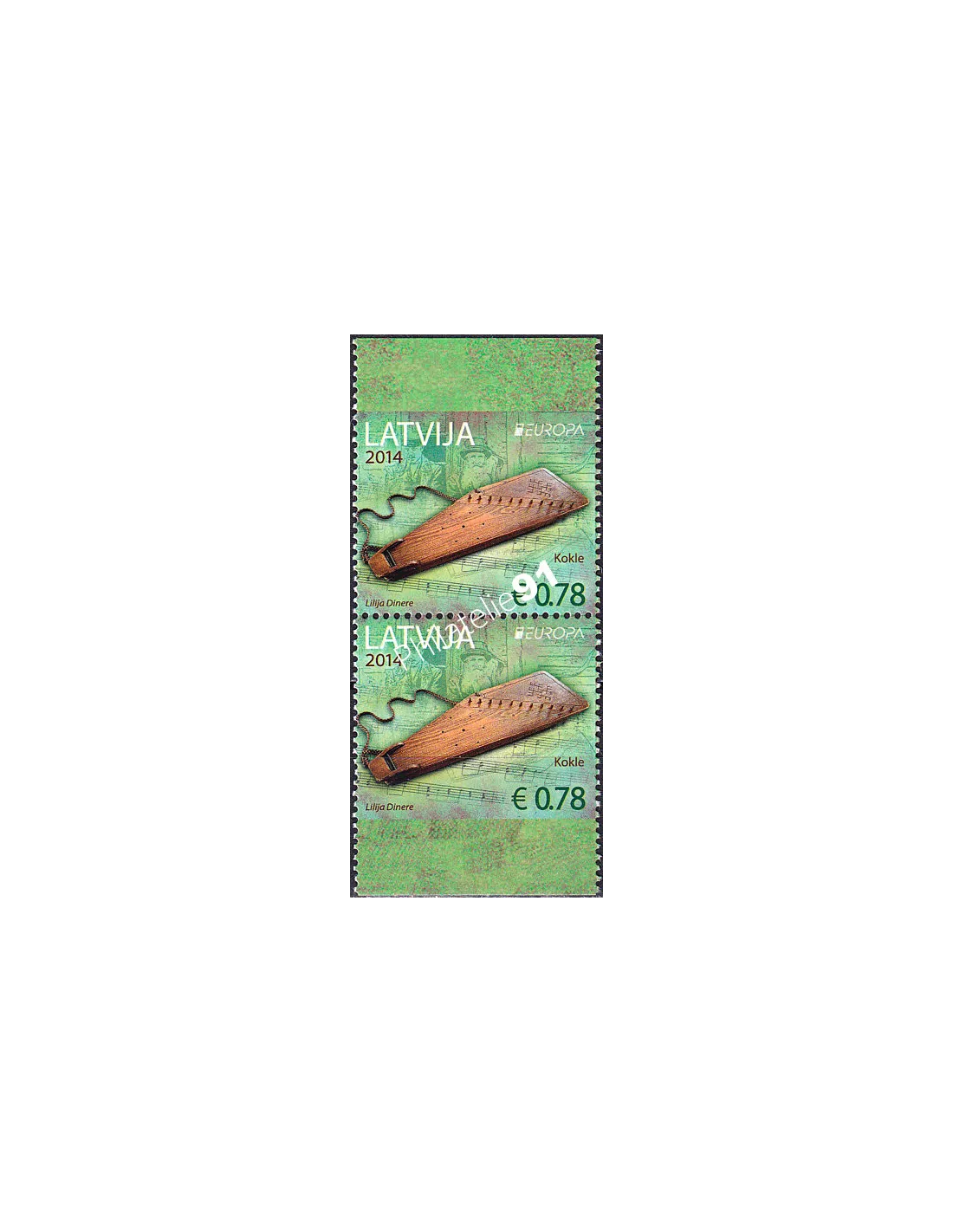 LETTONIE - n° 879a et 879b ** (Paire issue de carnet, timbres dentelés sur 3 côtés) - Europa 2014 - Instruments de musique