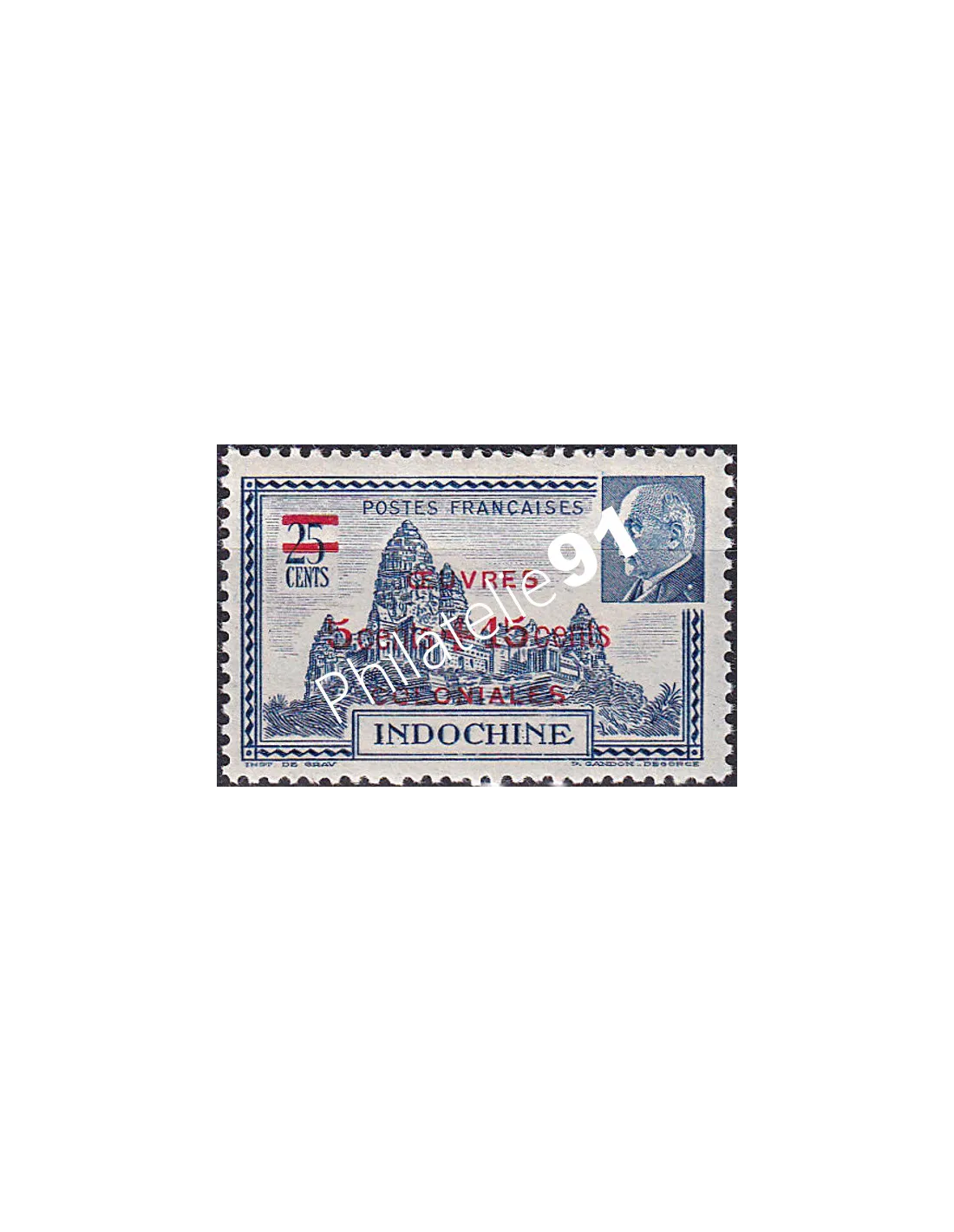 INDOCHINE - n° 294 ** - Temple d'Angkor et effigie du Maréchal Pétain - Surcharge "OEUVRES COLONIALES"