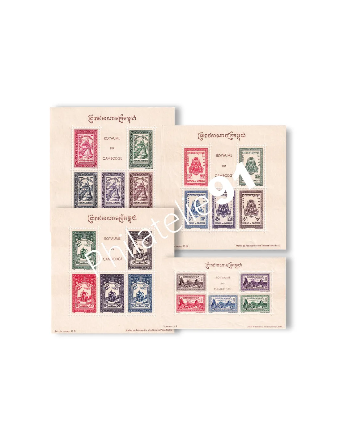 Blocs avec l’inscription "ROYAUME DU CAMBODGE" en langue Khmère et en français.
