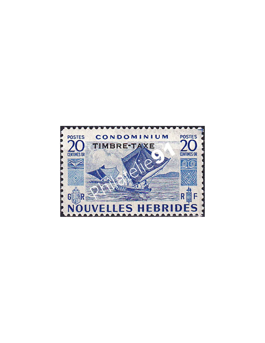 NOUVELLES-HEBRIDES - Timbres-taxe - n° 28 * - Pirogues à voiles - Timbre de 1953 surchargés "TIMBRE-TAXE"