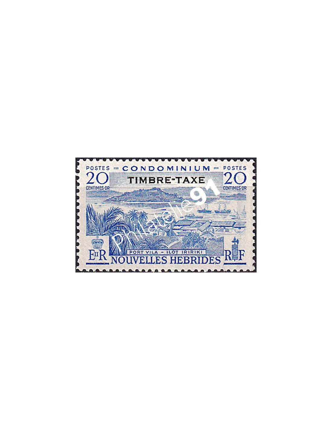 NOUVELLES-HEBRIDES - Timbres-taxe - n° 38 * - Port Vila et îlot Irriki - Timbre de 1957 surchargés "TIMBRE-TAXE"