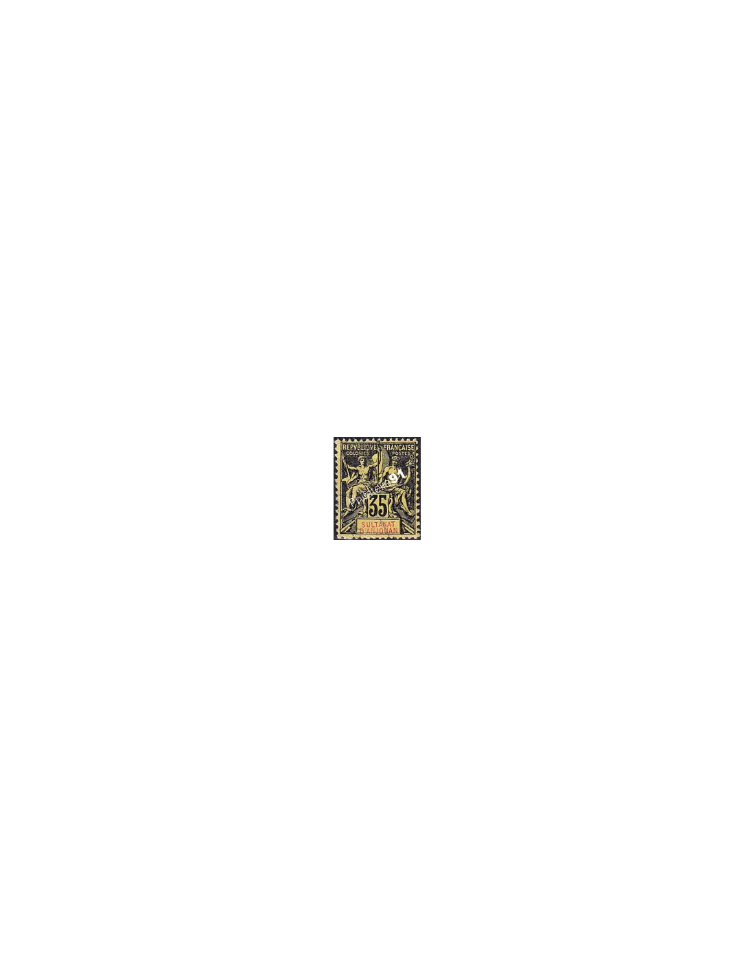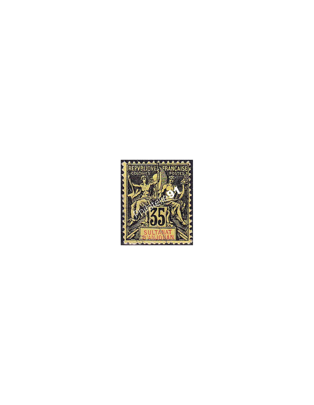 Timbre avec mention "SULTANAT D'ANJOUAN" dans le cartouche.