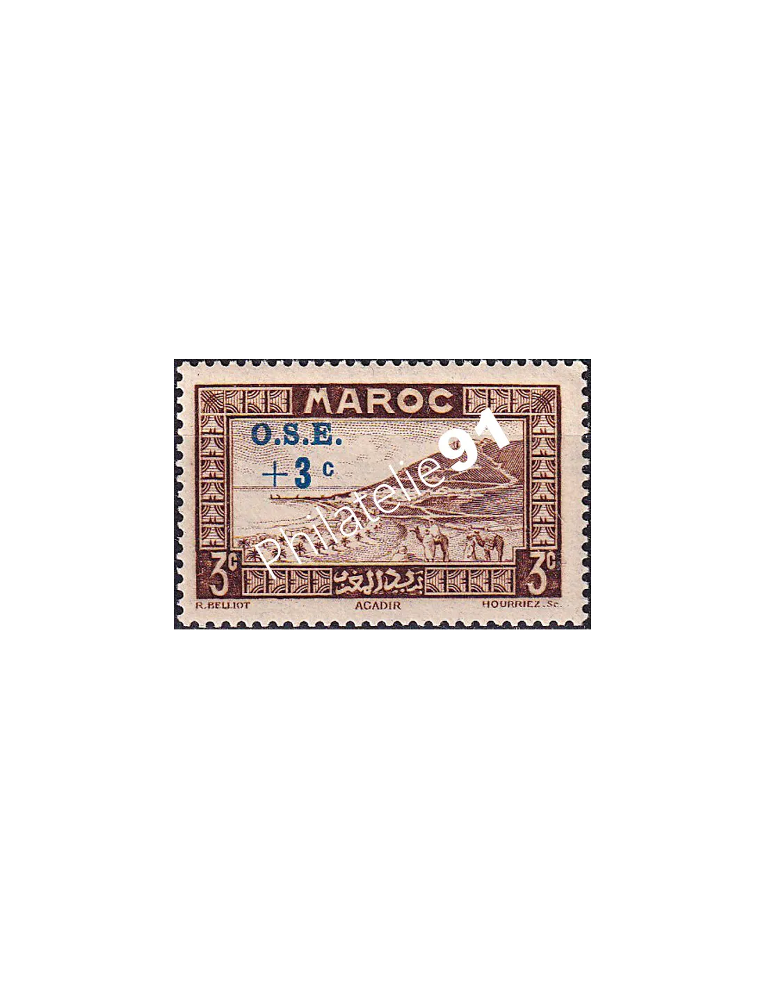MAROC - n° 154 ** - Au profit des oeuvres sociales de l'enfance - Timbre surchargé "O.S.E." - Rade d'Agadir