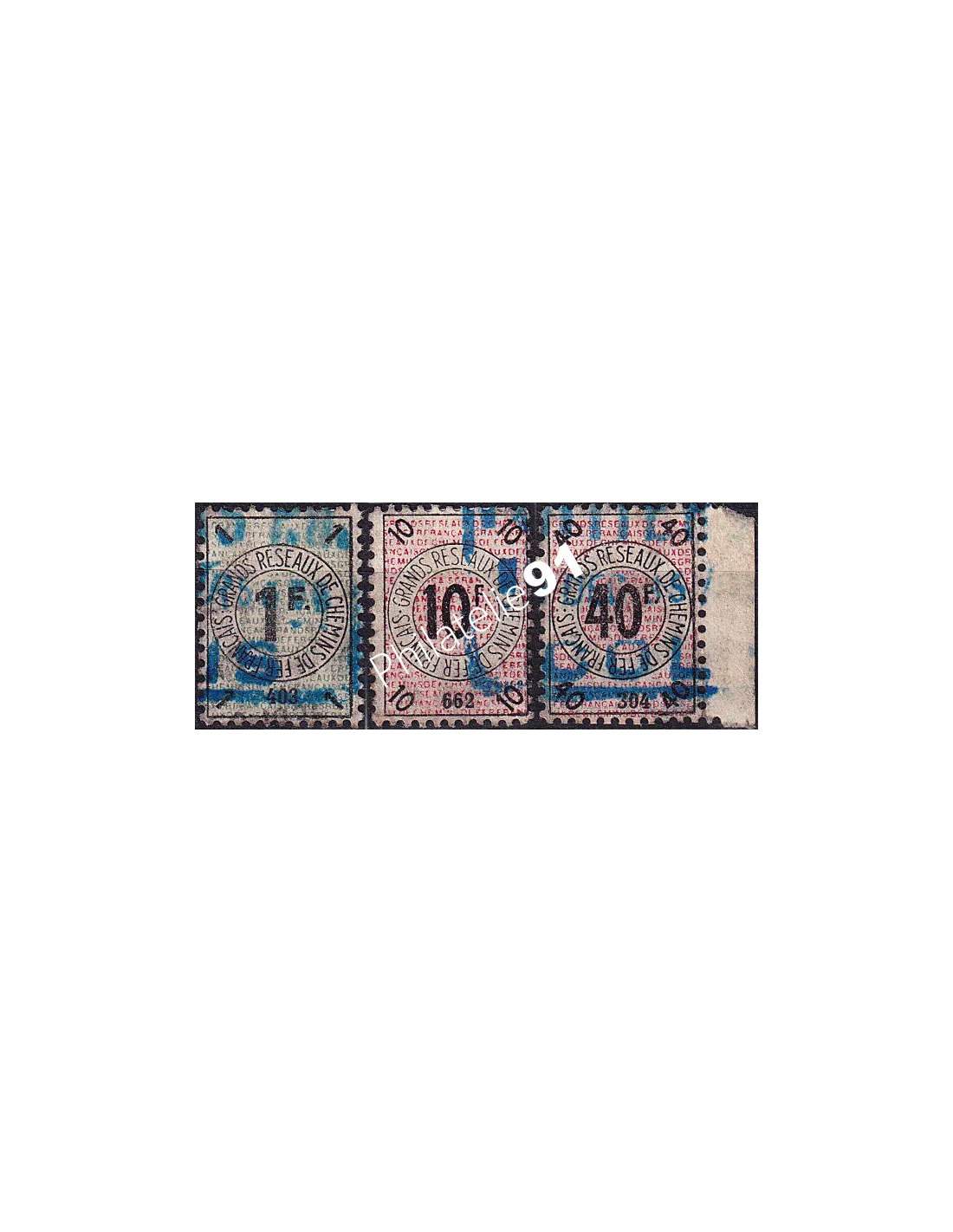 Lot de 3 timbres oblitérés des Grands réseaux de chemins de fer français (Colis postaux).