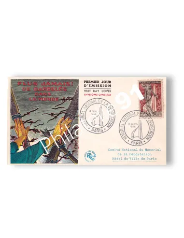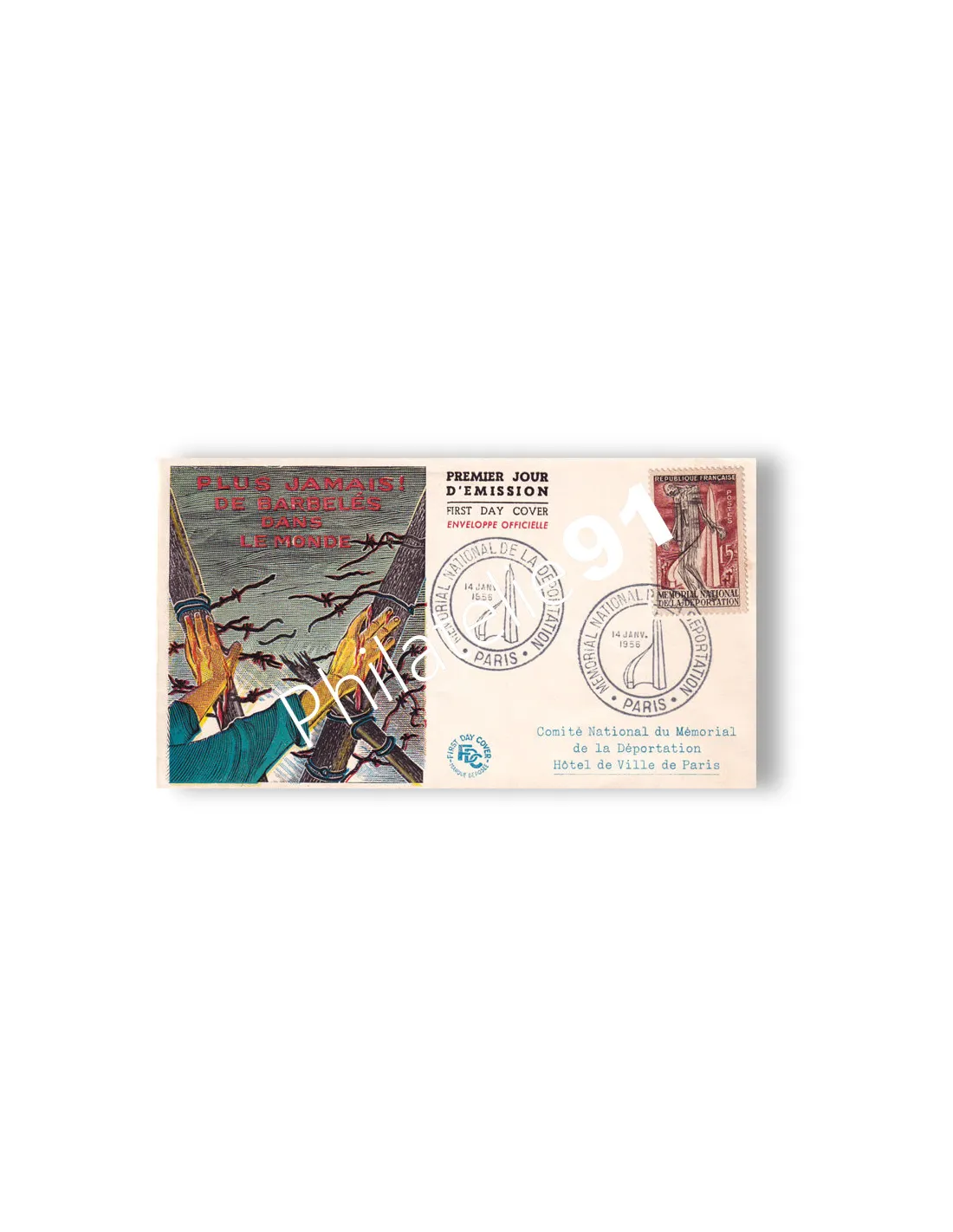 Cachet 1er Jour grand format "Mémorial national de la déportation - Paris", du 14 janvier 1956.