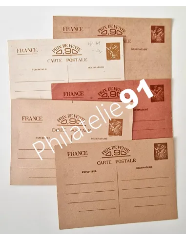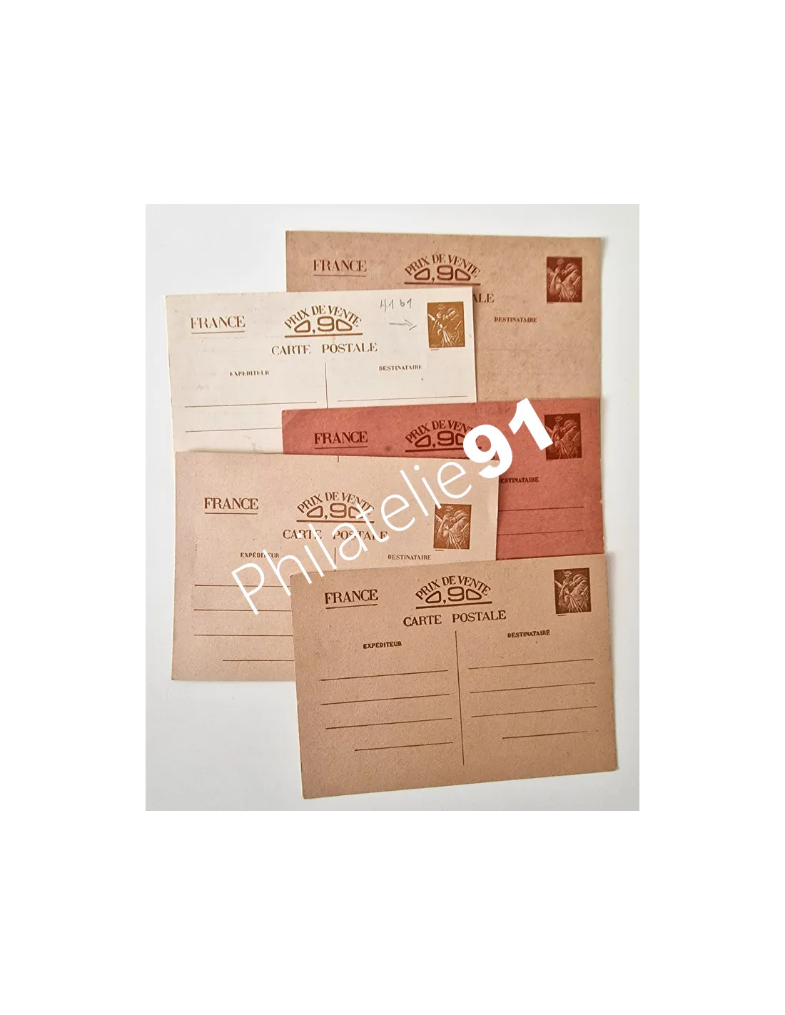 FRANCE - Lot de 5 Entiers postaux SANS VALEUR-CP1 ** - Cartes interzone - Type Iris (250403-2)