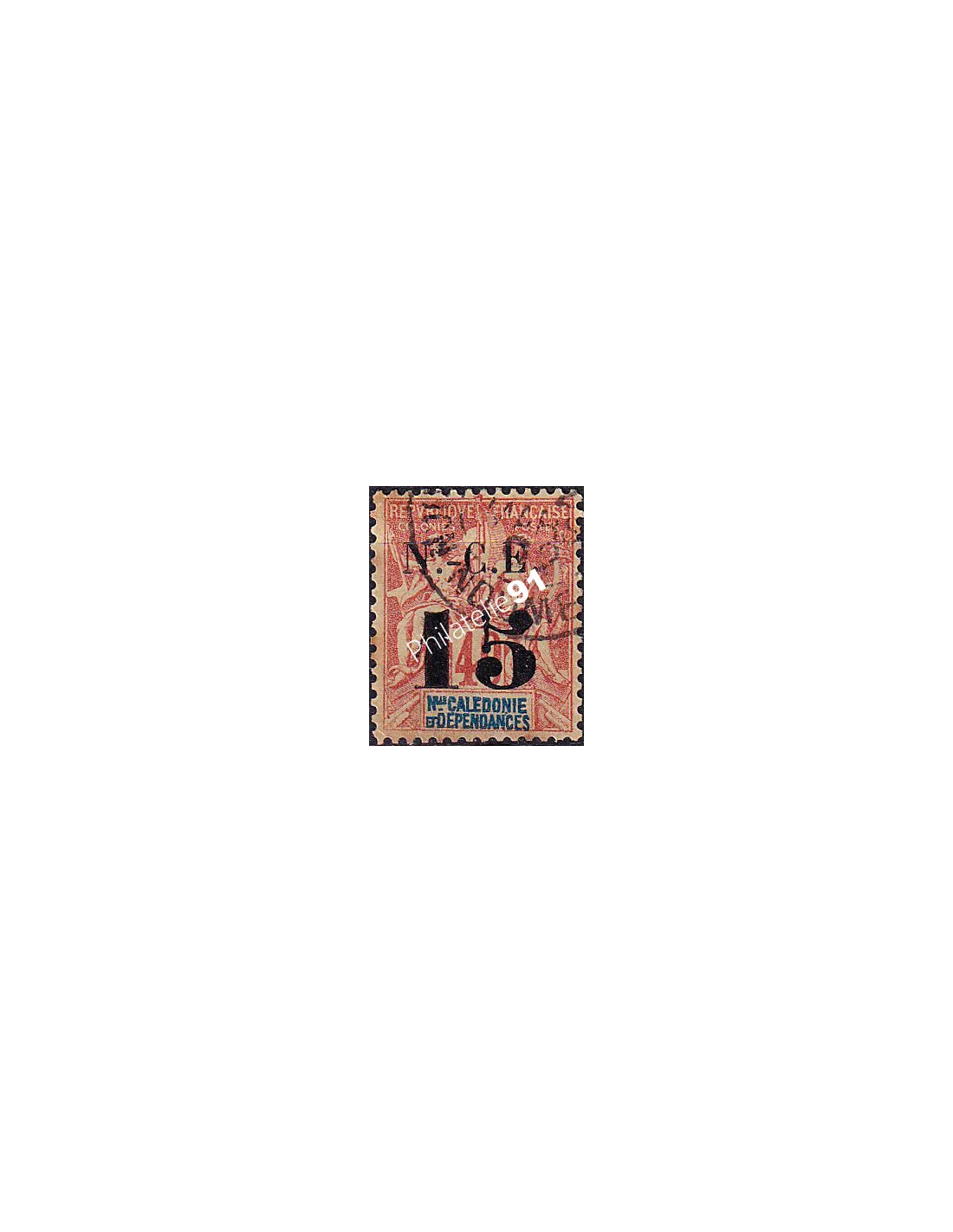 Timbre de 1892 avec surcharge "N.C.E." (pour "Nouvelle-Calédonie").