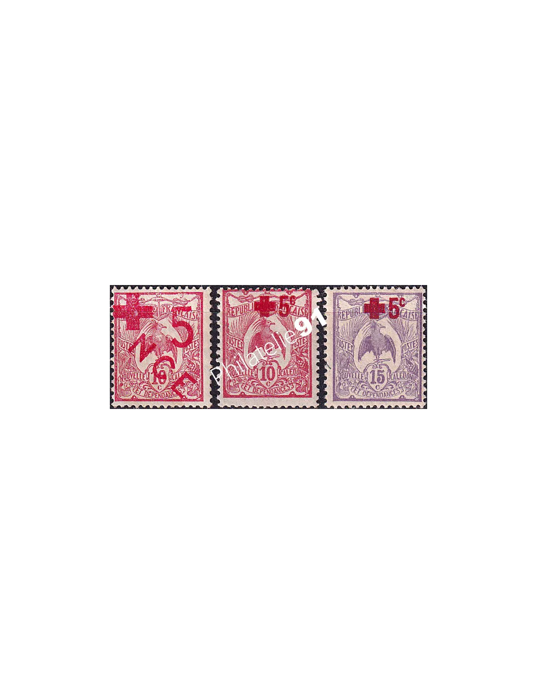 NOUVELLE CALÉDONIE - n° 110 à 112 * - Au profit de la Croix-Rouge - Type Cagou - Timbres surchargés