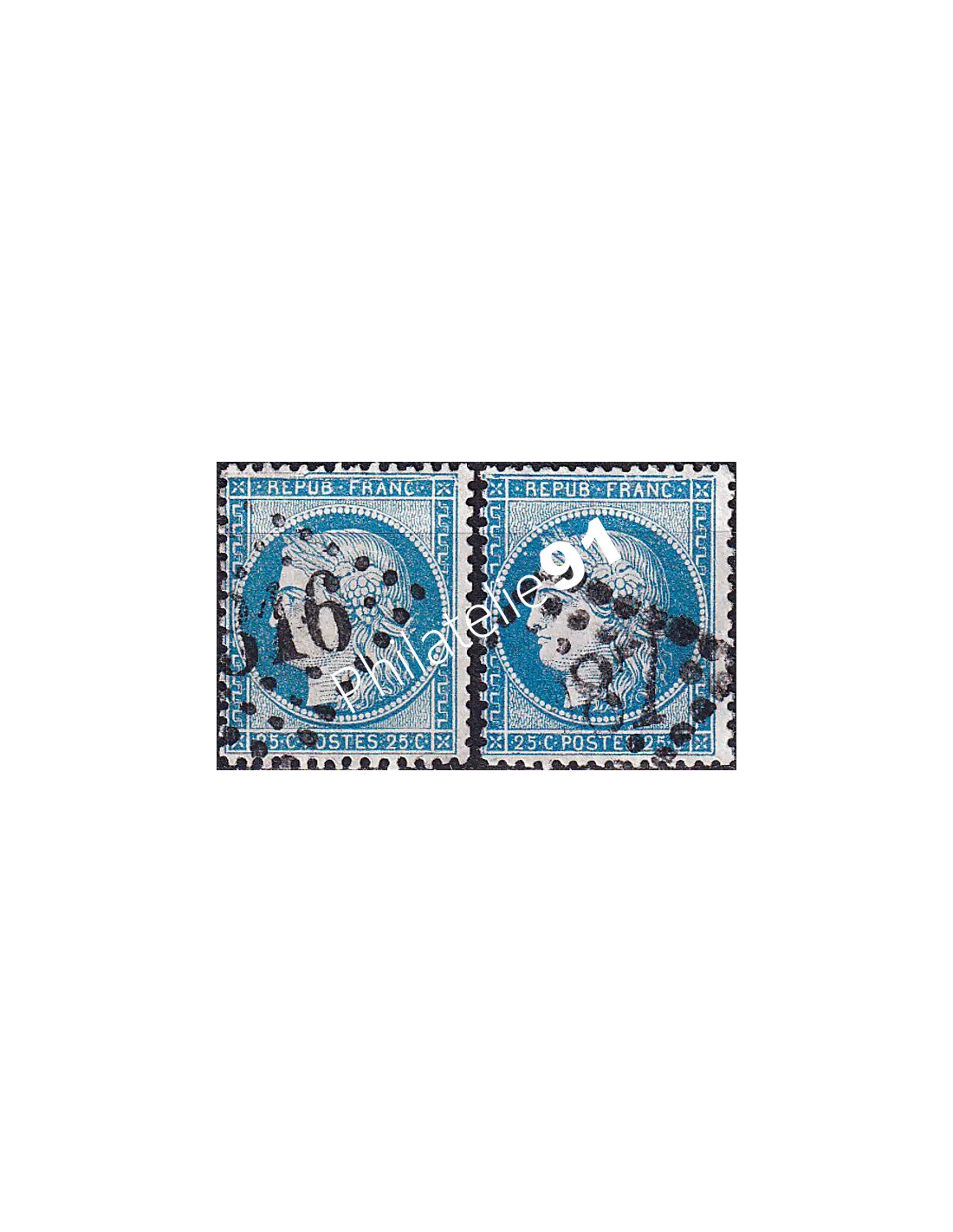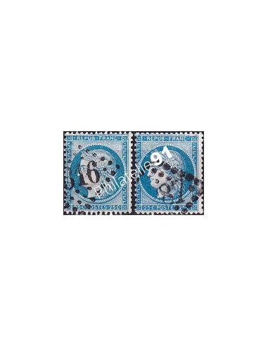 n° 60A oblitérés - Type Cérès - 3ème République - Lot de 2 timbres avec cadre cassé (250422-18)