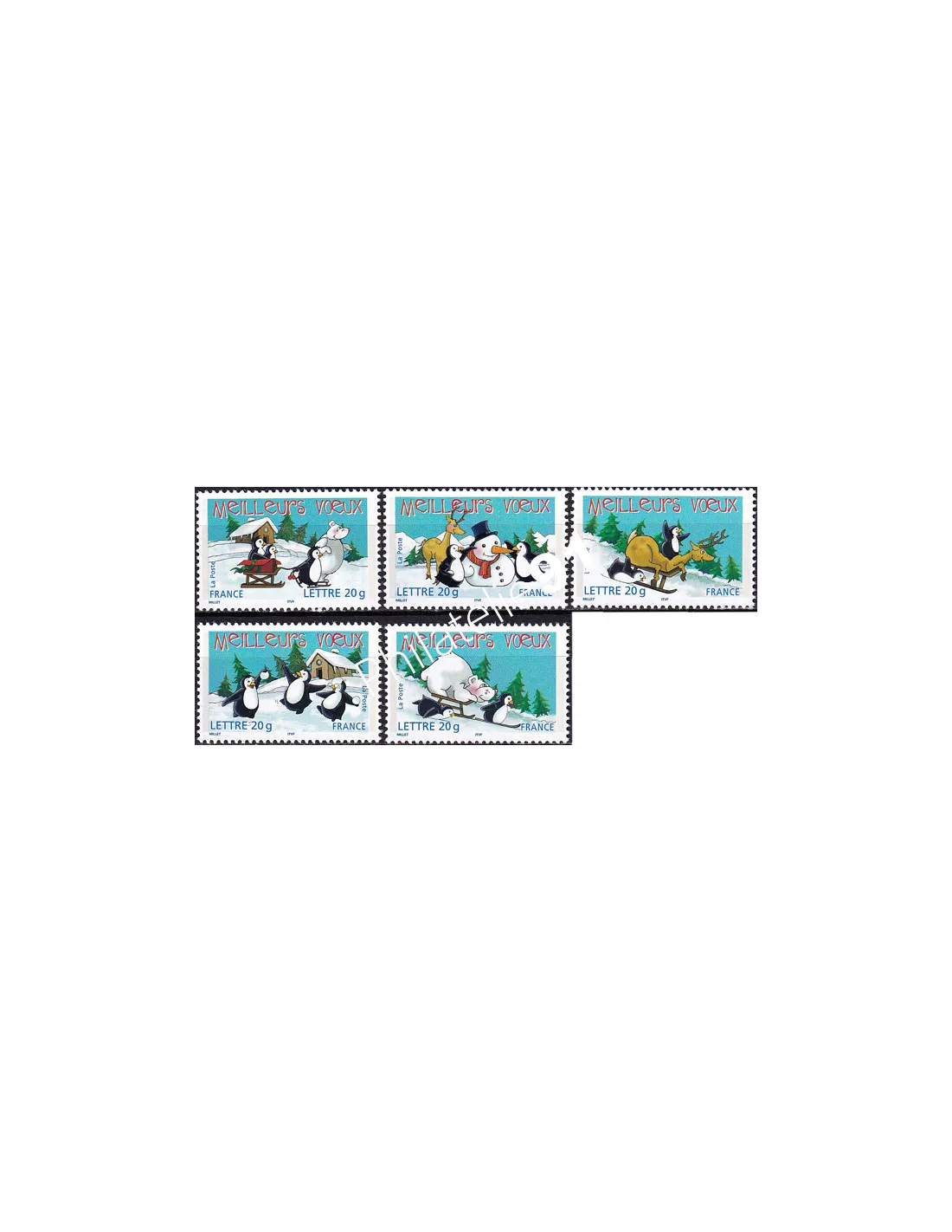 Timbre n° 3853a à 3857a ** (Gomme brillante) - "Meilleurs voeux" - Bonhomme de neige et manchots (250424-2)