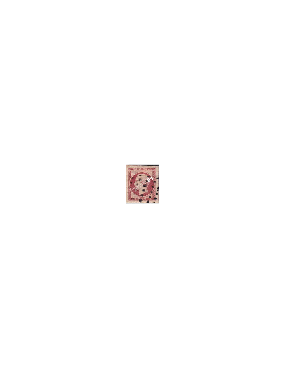 Timbre avec oblitération gros points carrés.