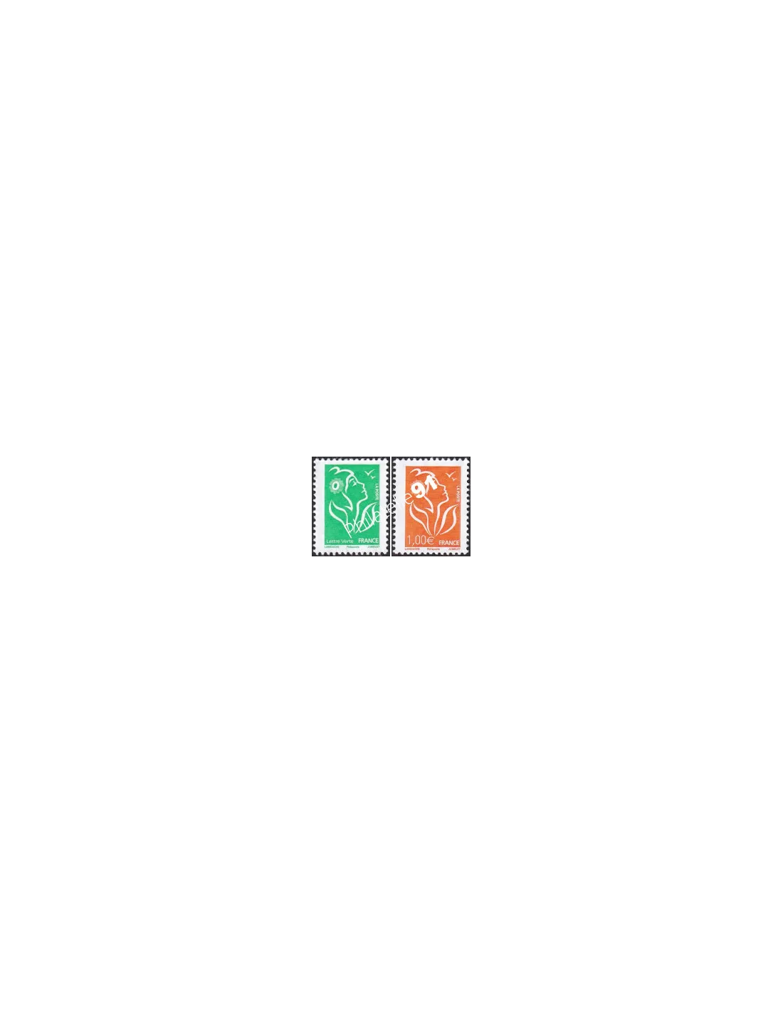 n° 3733B et 3739B - Marianne Lamouche Lettre verte et 1€ orange 2025 - légende Philaposte - Tirage limité - 2 timbres