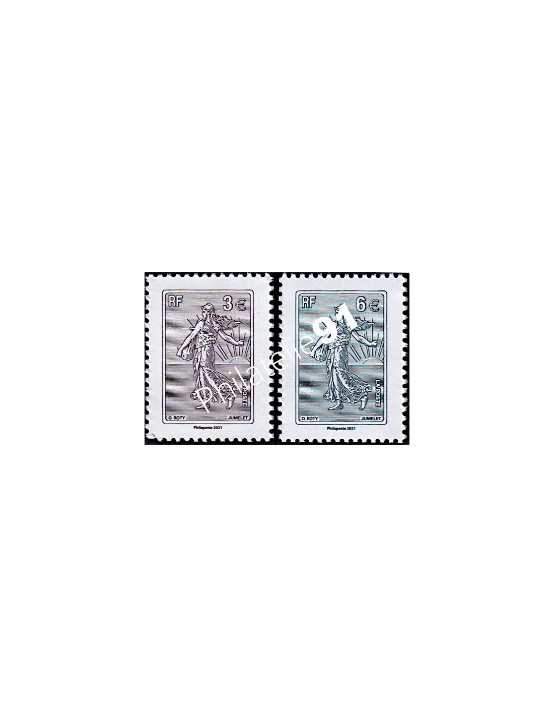 Paire de timbres n° 5532 et 5533 - issus de la Feuille F5532 - La Semeuse lignée