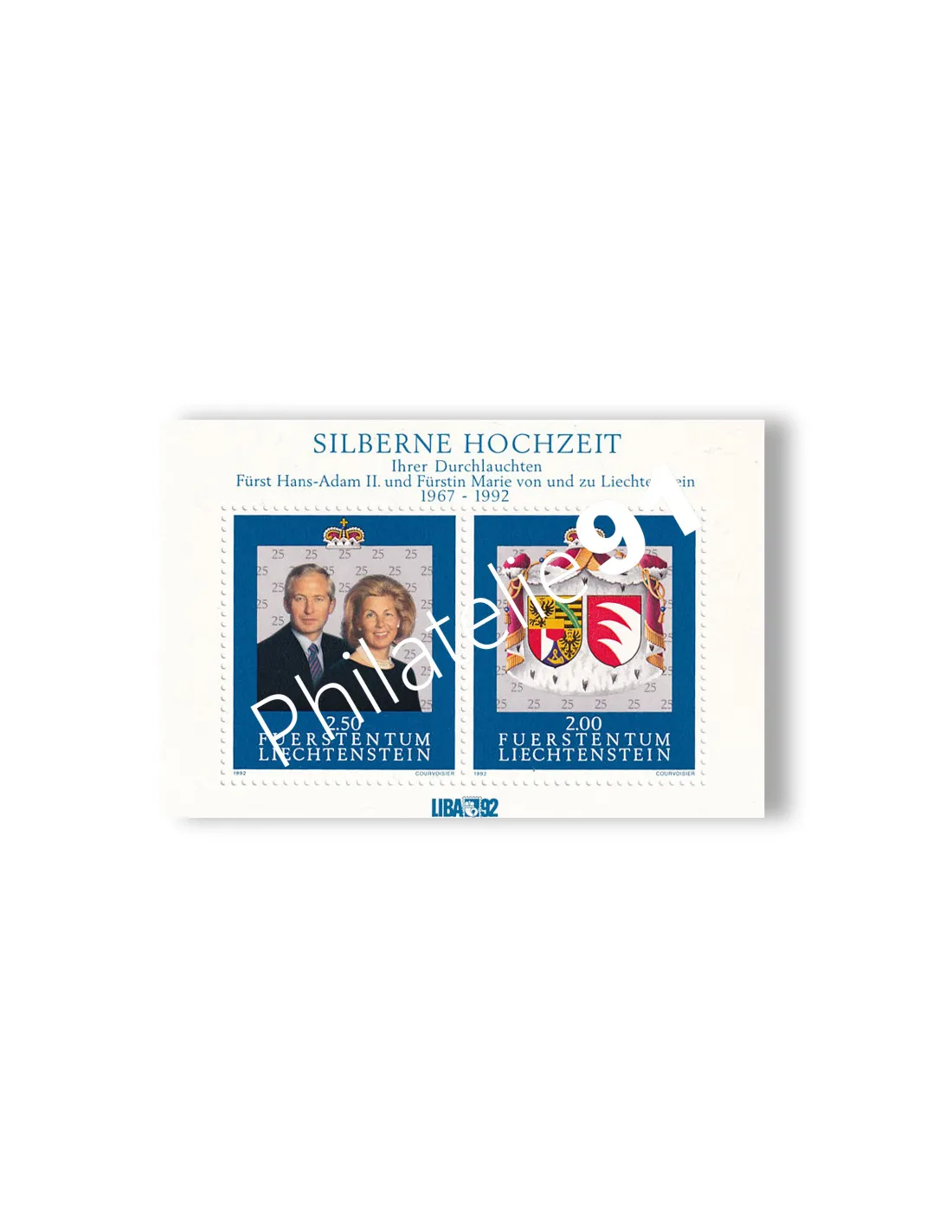 LIECHTENSTEIN - BF n° 17 ** - Exposition philatélique "Liba 92" - Noce d'Argent du couple princier