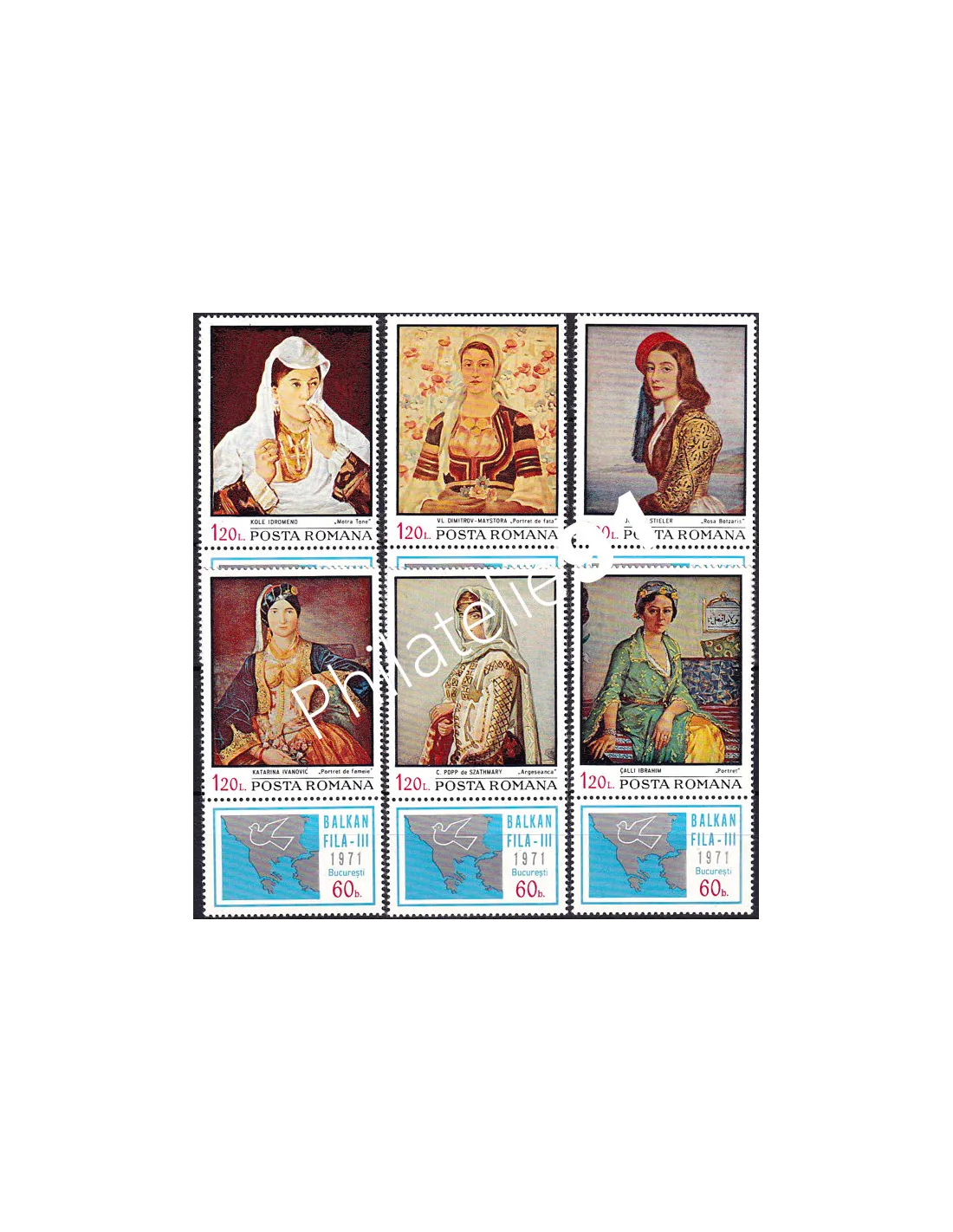 ROUMANIE - n° 2608 à 2613 ** (timbres avec vignette) - Exposition philatélique "Balkanfila III" - Tableaux