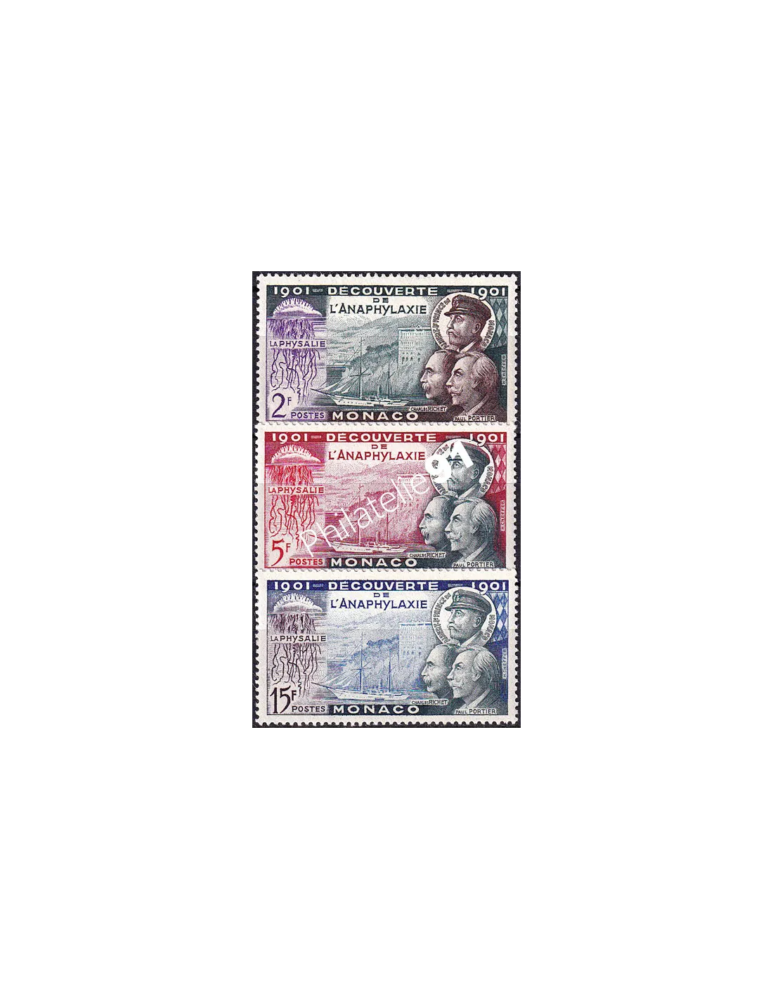 MONACO - n° 394 à 396 * - 50 ans de la découverte de l'anaphylaxie