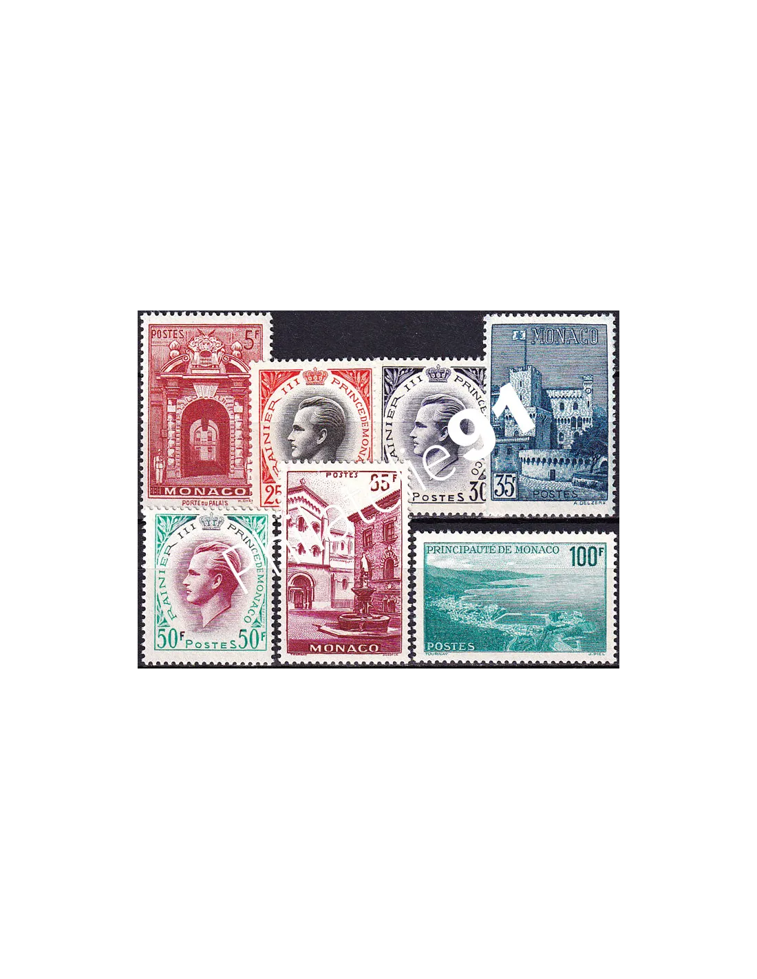 Vues de la Principauté (types de 1939-1941) et effigie du prince Rainier III (type tt).