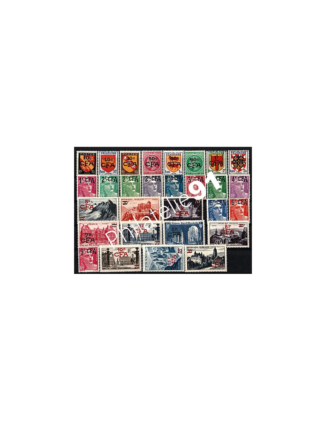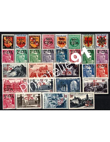 Série de 29 Timbres neufs**. Timbres de France surchargés.