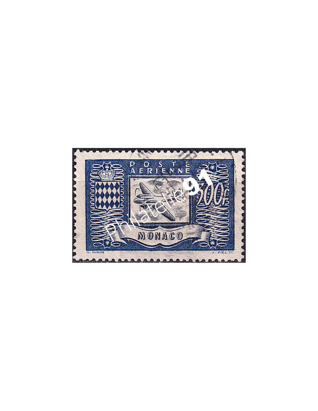 Timbre oblitéré, émis pour la poste aérienne de Monaco.